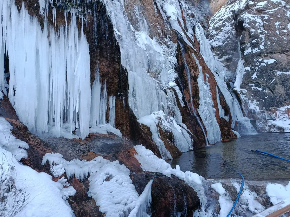 Donan su kütlesiyle birlikte oluşan metrelerce uzunluktaki buz sarkıtları, Günpınar Şelalesi'ni adeta açık hava buz müzesine dönüştürdü. Zorlu hava koşullarına rağmen bölgeye gelen ziyaretçiler, ortaya çıkan manzarayı fotoğraf ve video çekimleriyle kayıt altına aldı.