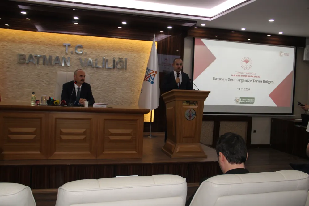 Lansman programında ayrıca Tarım Reformu Genel Müdürlüğü Daire Başkanı Deniz Oruç, Batman Sera Organize Sanayi Bölgesi’ne ilişkin lansman sunumunu gerçekleştirdi. Sunumda projenin teknik altyapısı, üretim modeli, yatırım süreci ve uygulama takvimi katılımcılara aktarıldı.
