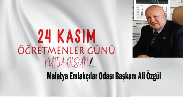 Malatya Emlakçılar Odası Başkanı Ali Özgül, 24 Kasım Öğretmenler Günü dolayısıyla yayımladığı mesajda, öğretmenlerin toplumsal yaşamın temel taşları olduğunu vurguladı.