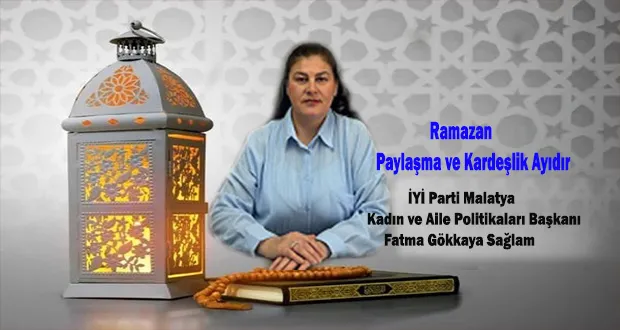İYİ Parti Malatya Kadın ve Aile Politikaları Başkanı Fatma Gökkaya Sağlam, Ramazan ayının başlaması dolayısıyla bir mesaj yayımladı.