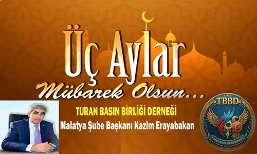 Turan Basın Birliği Derneği Malatya Şube Başkanı Kazım Erayabakan, İslam âlemi için büyük manevi anlam taşıyan Üç Aylar’ın başlaması dolayısıyla bir mesaj yayımladı.