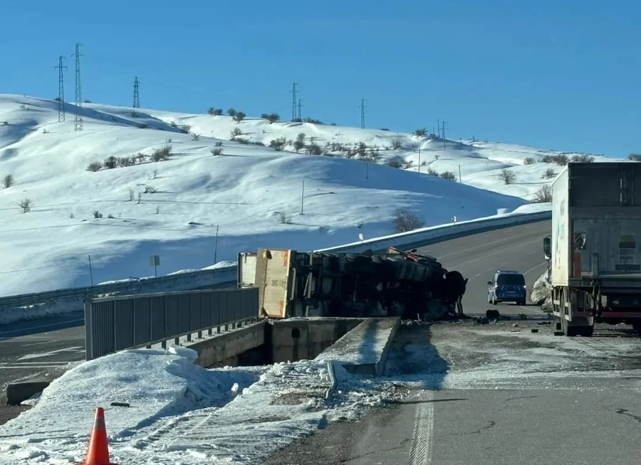 Sık sık kazalarla gündeme gelen köprüde, plakası henüz öğrenilemeyen kamyon sürücüsünün direksiyon hakimiyetini kaybetmesi sonucu araç kontrolden çıkarak yan yattı.