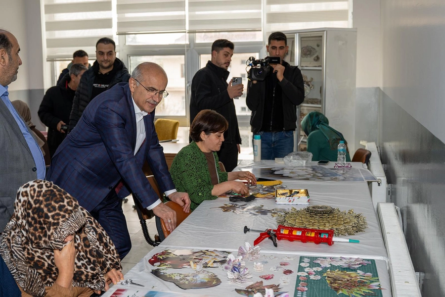 Er, külliye içerisinde bulunan Kültür ve Sanat Atölyelerini de ziyaret ederek, çalışmalar hakkında bilgi aldı.