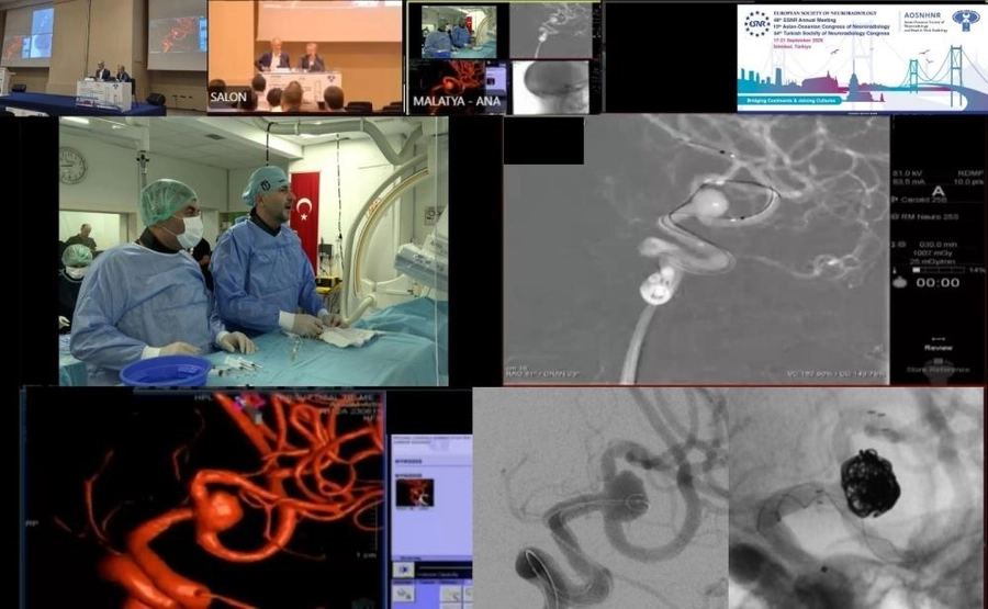 Toplantı kapsamında, İnönü Üniversitesi Turgut Özal Tıp Merkezi Girişimsel Nöroradyoloji Ünitesi'nden Prof. Dr. İsmail Okan Yıldırım ve Doç. Dr. Ahmet Turan Kaya öncülüğündeki ekip, beyin damarlarında oluşan baloncukların (anevrizma) kapalı yöntemle tedavisini canlı yayında gerçekleştirdi. Ameliyata Beyin ve Sinir Cerrahisi Anabilim Dalı'ndan Doç. Dr. Bora Tetik de eşlik etti. Zorlu operasyon, dünyanın dört bir yanından gelen bilim insanları tarafından anbean takip edildi.