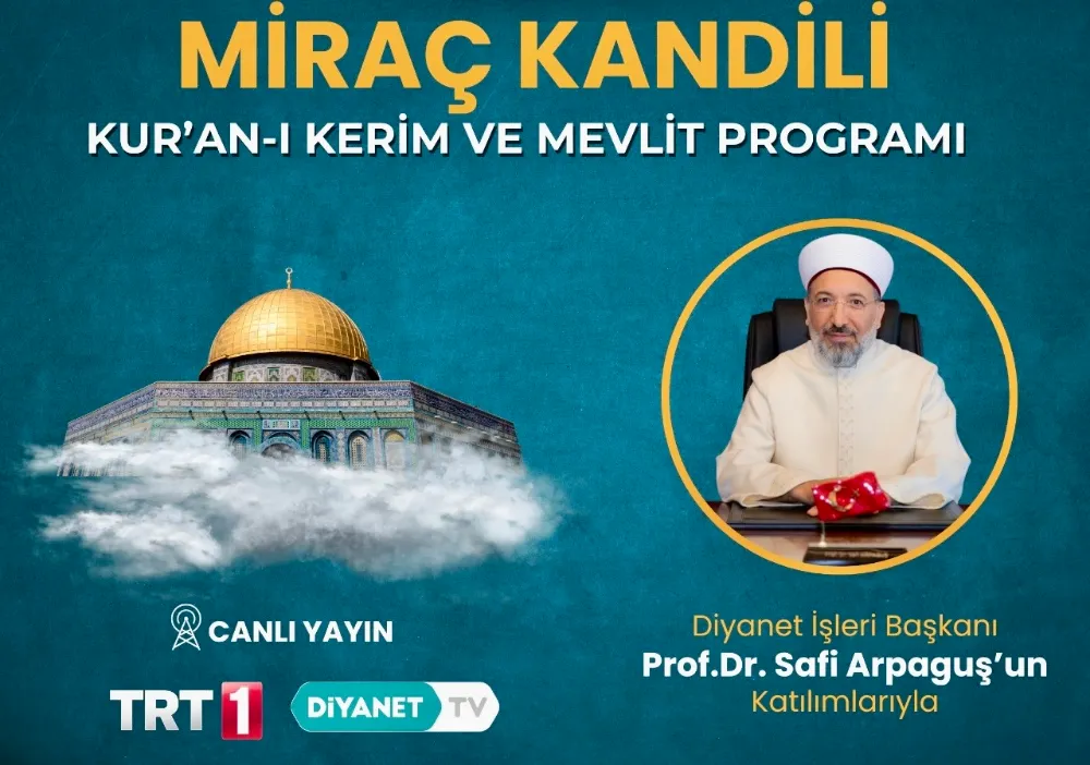 Miraç Kandili münasebetiyle Malatya Müftülüğü koordinesinde kapsamlı bir program düzenlenecek. Diyanet İşleri Başkanı Prof. Dr. Safi Arpaguş’un katılımlarıyla gerçekleştirilecek Kur’an-ı Kerim tilaveti ve Mevlit Programı, 15 Ocak Perşembe günü Kernek Karagözlüler Camii’nde yatsı vaktinde icra edilecek. Manevi atmosferin tüm yurda yansıtılacağı program, TRT 1 ve Diyanet TV ekranlarından canlı olarak yayınlanacak.