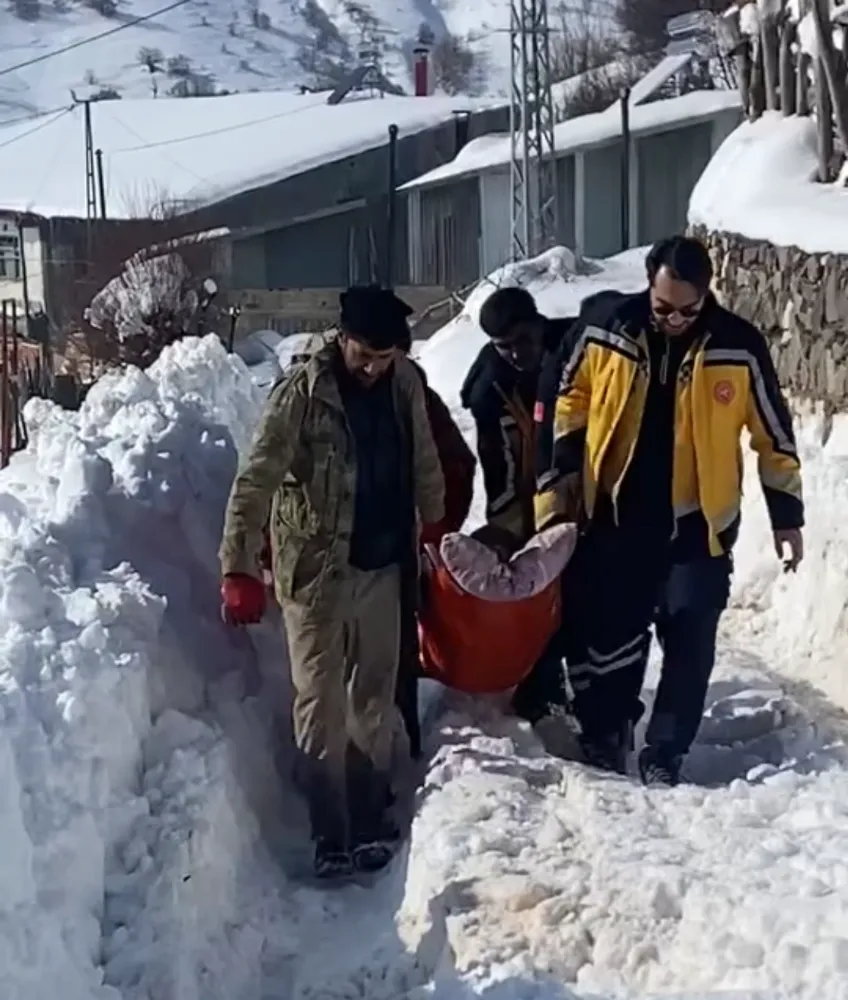 Yoğun kar nedeniyle yolu kapanan mahallede rahatsızlanan 86 yaşındaki hasta, ekipler ve vatandaşların yardımıyla hastaneye ulaştırıldı.