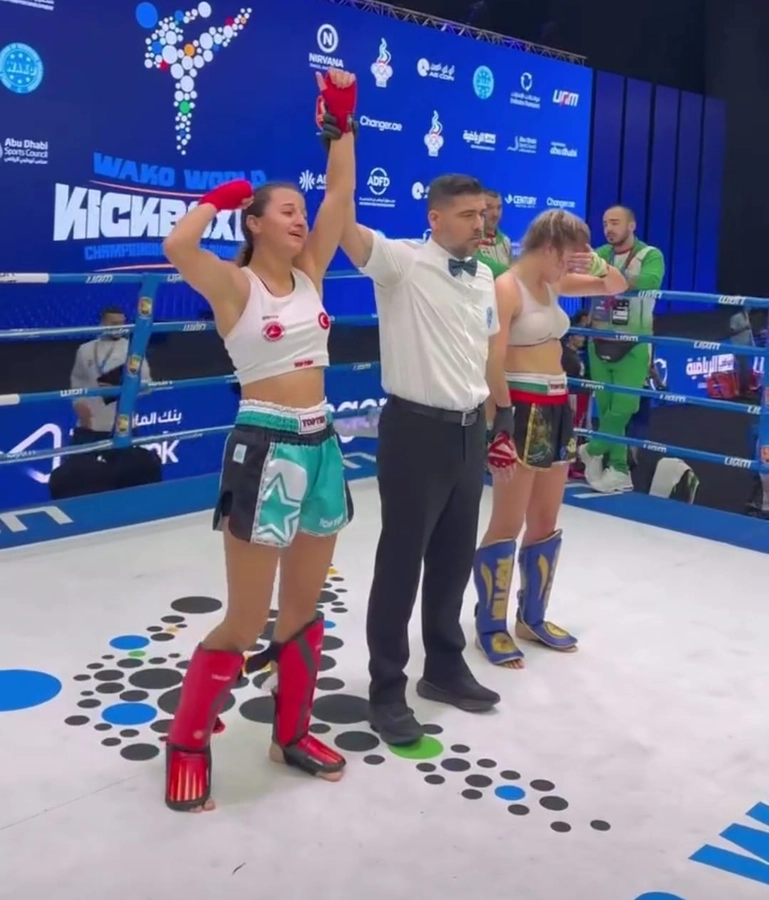 Birleşik Arap Emirliklerinin başkenti Abu Dabi’de, gerçekleştirilen Kick Boks Dünya Şampiyonası esnasında WAKO İF tolantısına katılım sağlayan Türkiye Kick Boks Federasyonu Başkanı Sayın Salim Kayıcı, Milli Takımızla Dünya Şampiyonasında yerimizi aldık. Bugün sona eren Dünya büyükler Kick Boks Şampiyonasında sporcumuz İzmir Golden Boys Milli Sporcusu Elif Ceren Şanlı , Şili,Ukrayna Çek Cumhuriyeti ve Bulgaristan rakiplerini yenerek +56 Kg dünya şampiyonu , hem de en iyi Kadın Dövüşçüsü seçilerek Best Fighter ödülünü almıştır. sporcumuz Betül Zarasız ,İngiliz rakibini yenerek 55 Kg Ligth Contact Dünya Şampiyonu, sporcumuz Kadir Yıldırım ,Hırvat rakibini yenerek +91 Kg Low Kick Dünya Şampiyonu,.sporcumuz Bayram Eren Celep , Polonya’lı,rakibi Dominik Kaleta’yı yenerek 81Kg Low Kick Dünya Şampiyonu,sporcumuz Özlem Melek Korkmaz , Meksika’lı rakibini yenerek 48 KgLow Kick Dünya Şampiyonu olmuşlardır.