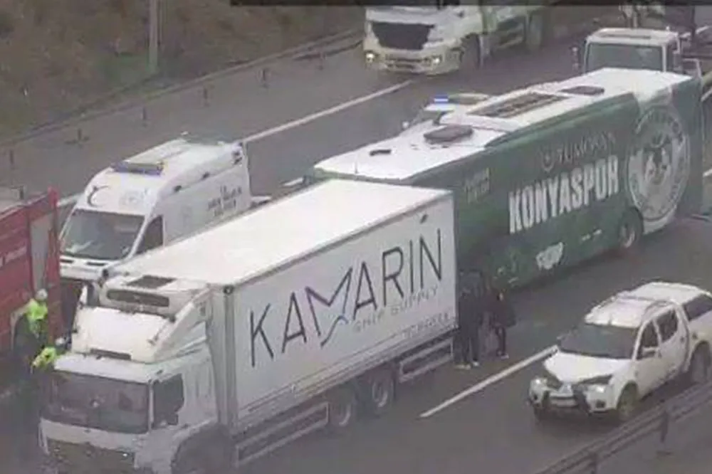 İstanbul Valiliğinden yapılan açıklamaya göre, bugün saat 14.55 sıralarında, Konyaspor U19 Takım Otobüsü seyir halindeyken Pendik Kurna Anadolu Otoyolu Kuzey Marmara Sapağı mevkiinde, önünde ilerleyen kamyona arkadan çarptı. Kaza sonucu biri otobüs şoförü, biri kamyon şoförü ve 5’i futbolcu olmak üzere toplam 7 kişi yaralandı. İhbar üzerine olay yerine sağlık, itfaiye ve emniyet ekipleri sevk edildi. Yaralılar, ilk müdahalelerinin ardından çevredeki hastanelere kaldırılarak tedavi altına alındı. Yaralıların hayati tehlikesinin bulunmadığı bildirildi. Kazayla ilgili inceleme başlatıldı.