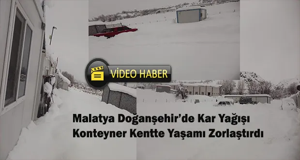 Malatya’nın Doğanşehir ilçesine bağlı Fındık Mahallesi’nde bulunan konteyner kent, etkili olan yoğun kar yağışı nedeniyle tamamen karla kaplandı.