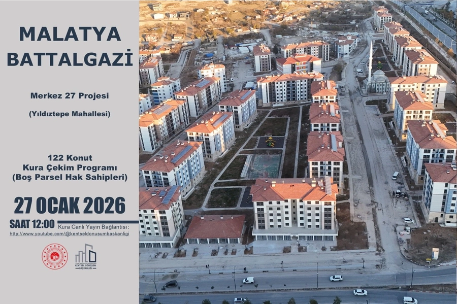 Malatya’da kentsel dönüşüm çalışmaları kapsamında hak sahiplerini yakından ilgilendiren kura çekimleri için geri sayım başladı. Kentsel Dönüşüm Başkanlığı koordinesinde yürütülen projeler kapsamında Yeşilyurt ve Battalgazi ilçelerinde inşa edilen konutların kura çekimleri, 27 Ocak 2026 Salı günü gerçekleştirilecek.