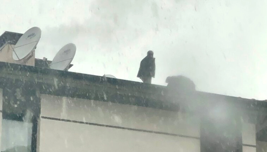 Çatıda bulunan işçi, polis ekipleri tarafından güvenli şekilde aşağı indirildi.