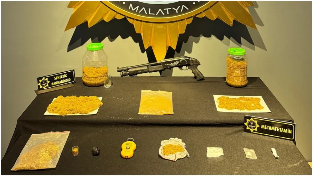 Malatya’da yapılan operasyonlarda, çeşitli tür ve miktarlarda uyuşturucu madde ile silah ele geçirildi.