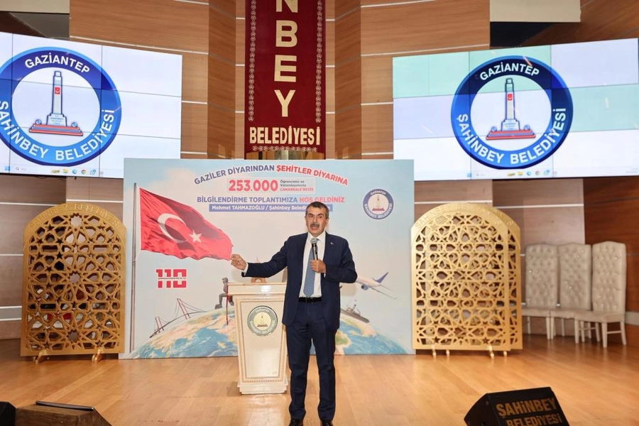Bir dizi program için Gaziantep'te bulunan Milli Eğitim Bakanı Yusuf Tekin, Şahinbey Belediyesi'nin Çanakkale Gezileri Bilgilendirme Toplantısı'na katıldı. Bakan Tekin, Şahinbey Belediyesi'nin organize ettiği Çanakkale gezilerinin öneminden bahsederek öğrencilere tavsiyelerde bulundu. Türkiye Yüzyılı Maarif Modeli hakkında da bilgi veren Bakan Tekin toplantı sonunda öğrencilerle birlikte Çanakkale türküsünü seslendirdi.