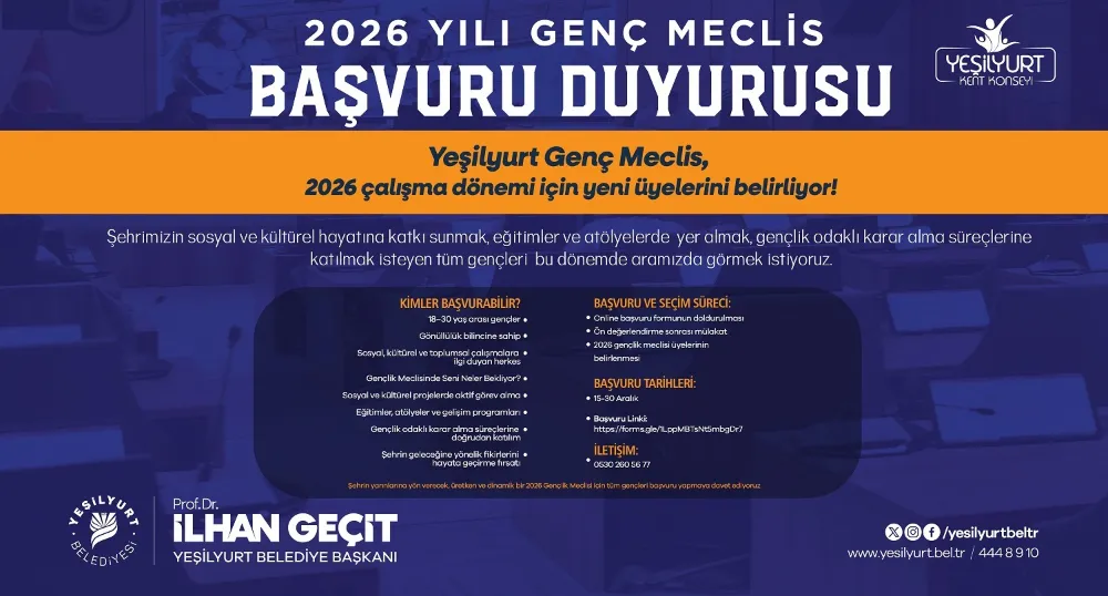 Başvurular, online başvuru formunun doldurulmasıyla başlayacak. Ön değerlendirmeyi geçen adaylar mülakata davet edilecek. Mülakat sürecinin tamamlanmasının ardından 2026 Yeşilyurt Genç Meclisi üyeleri belirlenecek.
