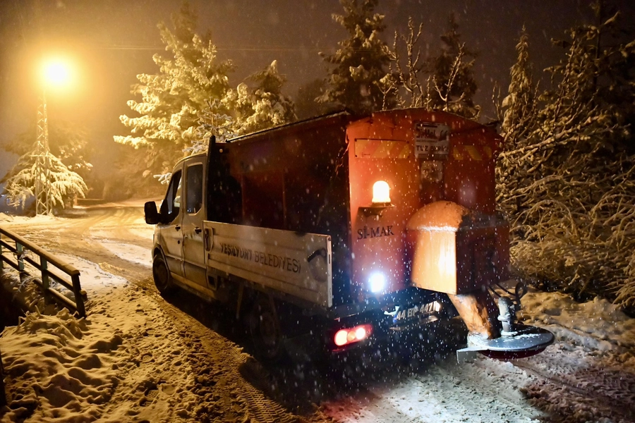 Akşam saatlerinde etkisini artıran kar yağışıyla birlikte Yeşilyurt Belediyesi ekipleri, ilçe genelinde ulaşımın aksamaması ve olası olumsuzlukların önüne geçilmesi amacıyla karla mücadele çalışmalarına hız verdi.
