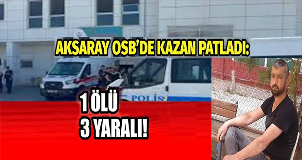 Olay, saat 08.45 sıralarında Aksaray Organize Sanayi Bölgesi’nde (OSB) faaliyet gösteren sıcak su boyler kazanları ve elektrikli termosifon üretimi yapan bir fabrikada meydana geldi. Edinilen bilgiye göre, fabrikada kazan patlaması sonucu çalışanlardan Yakup Gül hayatını kaybederken, R.İ. (26), V.Ç. (32) ve A.K. (52) isimli 3 çalışan hafif yaralandı. İhbar üzerine adrese sağlık, jandarma ve itfaiye ekipleri sevk edildi. Yaralı işçiler ambulanslarla Aksaray Eğitim ve Araştırma Hastanesine kaldırıldı. Burada tedavi altına alınan işçilerin sağlık durumlarının iyi olduğu öğrenildi.