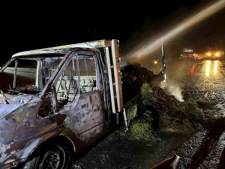 Olay, saat 20.30 sıralarında Malatya-Arapgir karayolu üzerinde meydana geldi. Edinilen bilgilere göre, bölgede seyir halinde olan yonca yüklü bir kamyonette henüz bilenmeyen bir nedenle yangın çıktı. İhbar üzerine olay yerine itfaiye ekipleri sevk edilirken, yangın ekiplerin müdahalesiyle kontrol altına alınarak söndürüldü. Yangında kamyonet tamamen yanarak kullanılamaz hale gelirken, olayla ilgili inceleme başlatıldı.