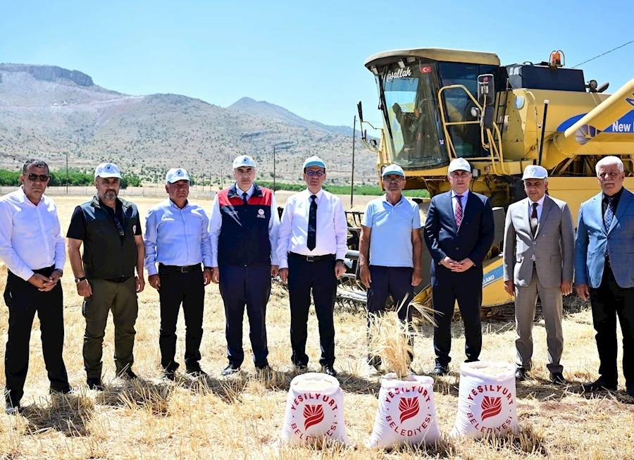 Yeşilyurt Belediye Başkanı Prof. Dr. İlhan Geçit, Malatya İl Tarım ve Orman Müdürü Osman Akar, Ziraat Mühendisleri Odası Başkanı Fevzi Çiçek ve Yeşilyurt Ziraat Odası Başkanı Doğan Solmaz, arpa hasadının devam ettiği Tarımsal Üretim ve AR-GE Sahasında ki üretim faaliyetlerini yerinde incelediler.