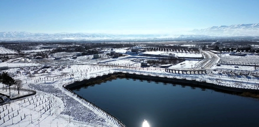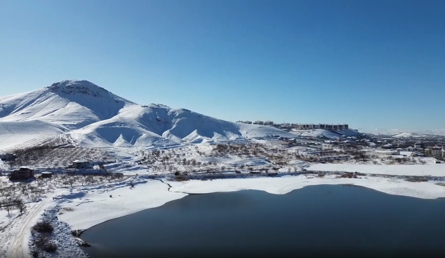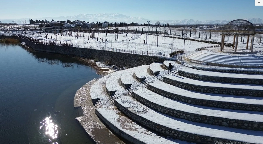 Dron ile havadan görüntülenen Battalgazi’de, beyaz örtünün tarihi dokuyla buluşması dikkat çekti. Özellikle kış mevsiminde sessizliğe bürünen kayısı bahçeleri ve Karakaya Barajı manzarası, izleyenlere görsel şölen sundu.