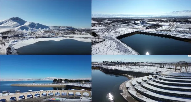 Kar yağışı sonrası Battalgazi’de tarihi yapılar ve doğal alanlar beyaz örtüyle kaplandı. Karakaya Barajı kıyısında yer alan Kırkgöz Sahil Parkı, ilçedeki kayısı bahçeleri, tarihi Kervansaray, Gelincik Tepe ve tarihi surlar karla birlikte farklı bir güzelliğe büründü.