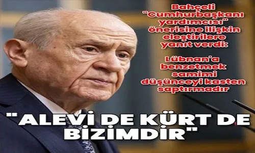 Milliyetçi Hareket Partisi (MHP) Genel Başkanı Devlet Bahçeli, "Cumhurbaşkanı yardımcısından birisinin Alevi, diğerinin de Kürt olabileceği değerlendirilmiştir. Bu fikri ve siyasi teklifi Lübnan’la ilişkilendirmek kasten saptırmaktır" dedi.