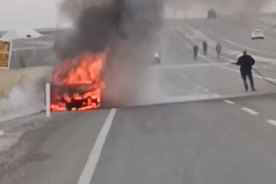 Kısa sürede çıkan dumanların aleve dönüşmesiyle araç yol kenarında terk edildi.