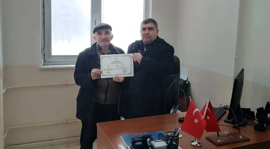 82 yaşındaki Mustafa Dalkılınç, Doğanşehir Halk Eğitim Merkezi tarafından düzenlenen okuma yazma kursunu başarıyla tamamlayarak eğitimin yaşı olmadığını gösterdi.