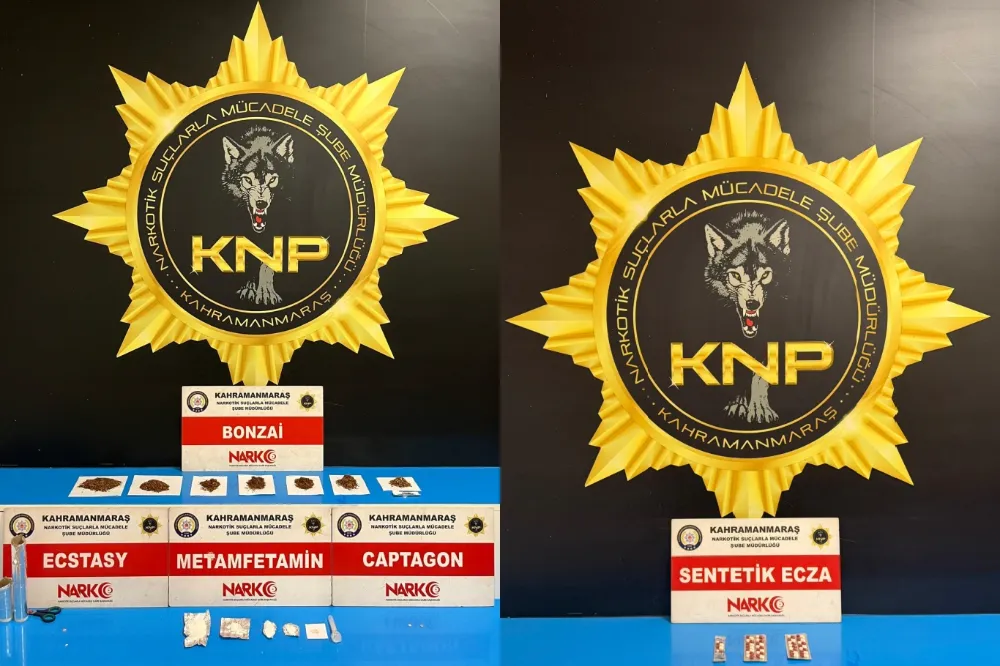 Kahramanmaraş Narkotik Suçlarla Mücadele Şube Müdürlüğü ekipleri, 2 Şubat’ta gerçekleştirdikleri operasyonda 32 adet sentetik ecza hap, 57,29 gram sentetik kannabinoid (bonzai), 3 adet sentetik hap ve 14,08 gram metamfetamin ele geçirdi. Operasyonda ayrıca 2 alüminyum folyo ve 1 makas bulundu.