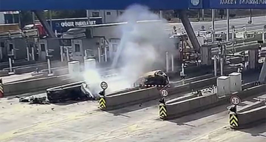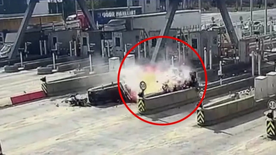 İstanbul Kuzey Marmara Otoyolu gişelerinde bir kişi kiraladığı otomobille beton refüje çarptı. Takla atan araç parçalanarak yandı. Sürücü hayatını kaybederken kaza anı kameraya yansıdı.