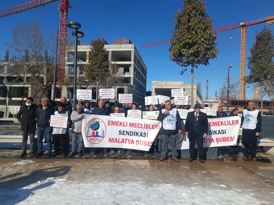Birleşik Emekliler Sendikası Malatya Şubesi tarafından Valilik önü Kapalı Çarşı önünde düzenlenen basın açıklamasında, emekli maaşlarının yetersizliği ve hayat pahalılığı protesto edildi.