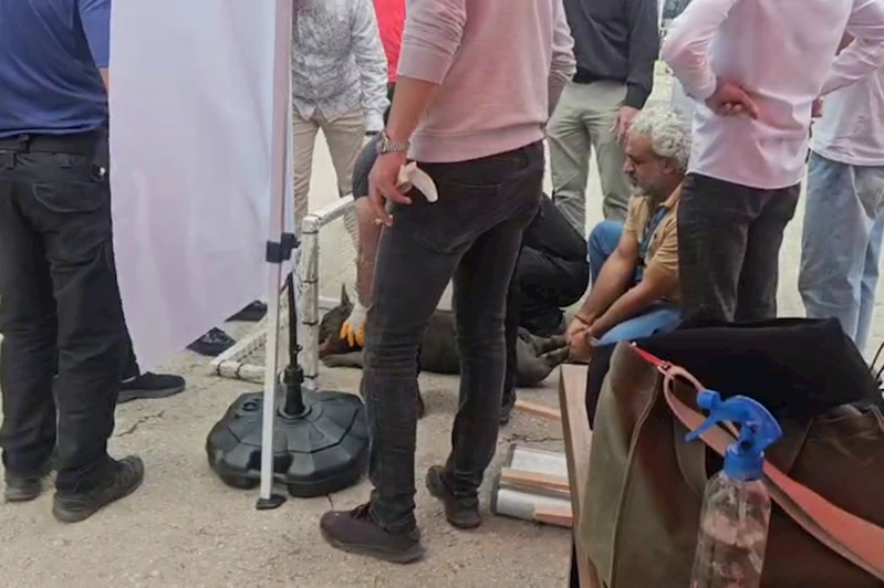 Saldırgan köpek, etkinlik alanında bulunan dört kişi tarafından güçlükle zapt edilerek bir aracın arkasına bağlandı.