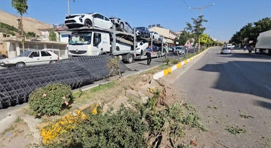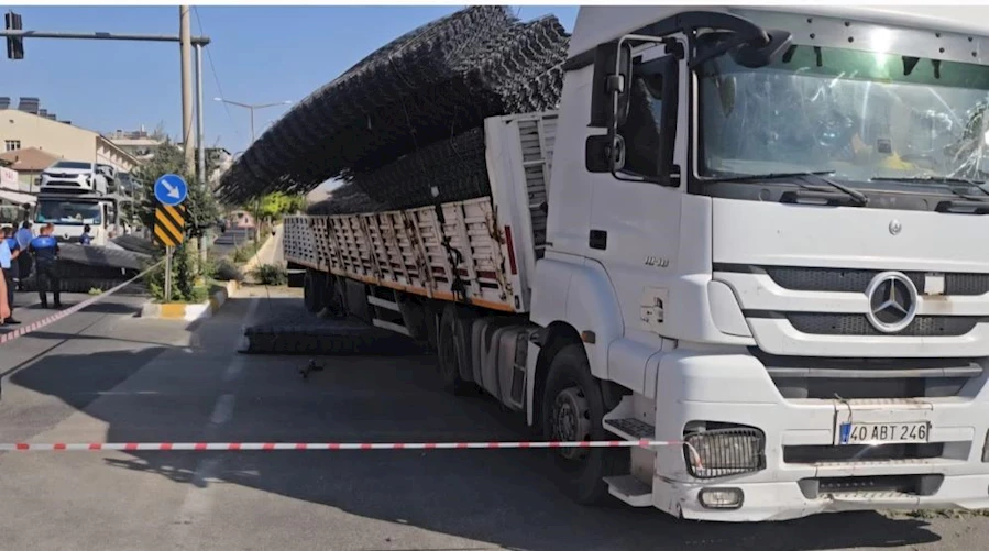 Malatya'nın Darende ilçesinde hasır demir yüklü bir aracın kontrolden çıkarak karşı şeride geçmesi sonucu meydana gelen kazada, yola savrulan malzemeler paniğe neden oldu.