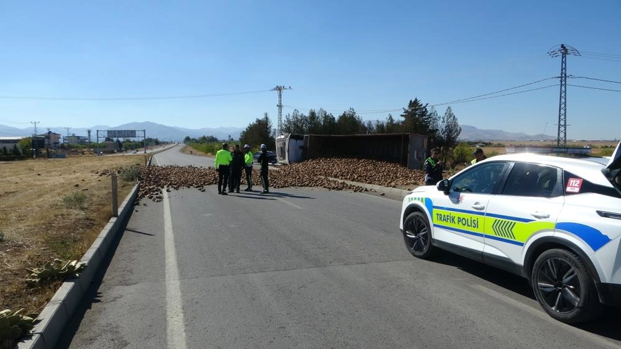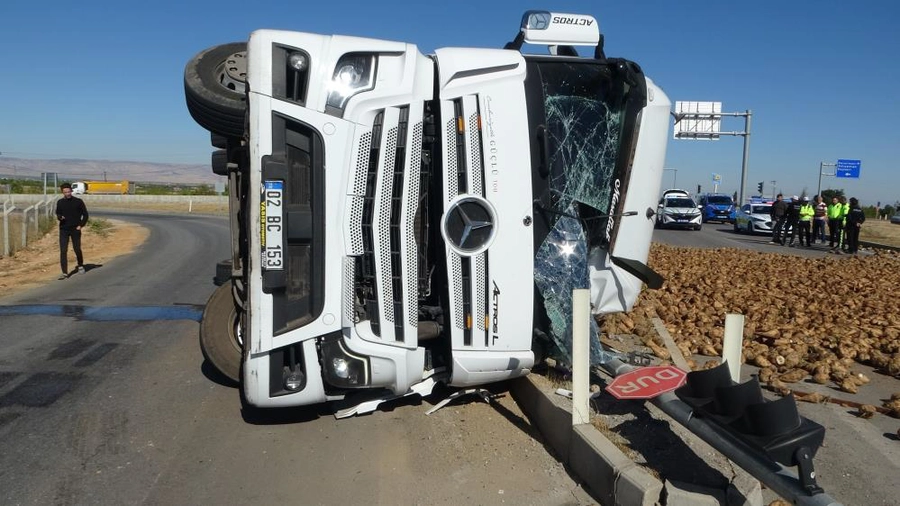 Malatya'da sürücünün kontrolünden çıkan pancar yüklü tır devrildi. Tonlarca pancarın yola savrulduğu kazada 1 kişi yaralandı.