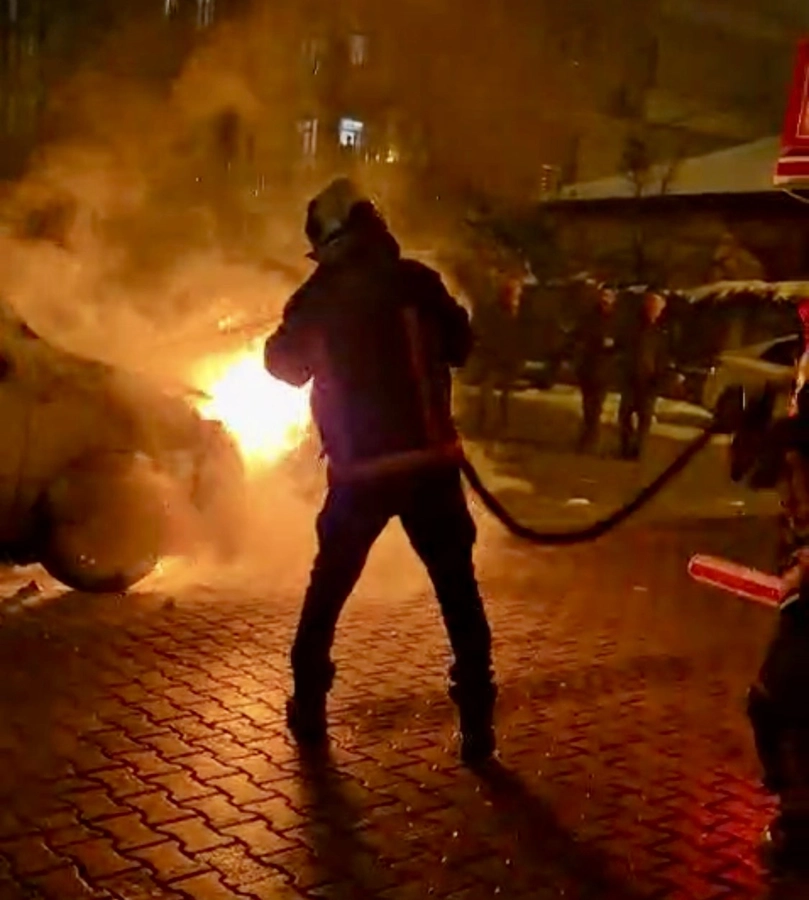 Vali Konağı yakınlarında park halindeki hafif ticari araçta çıkan yangın, çevrede kısa süreli paniğe yol açtı.