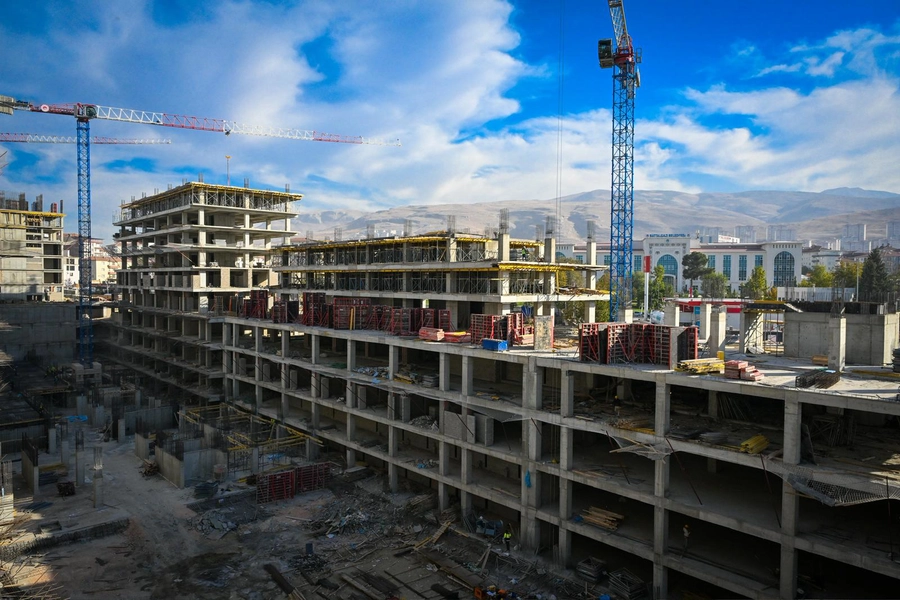 Kahramanmaraş merkezli 6 Şubat depremlerinde büyük yıkım yaşayan Malatya’nın yeniden imar ve inşa faaliyetleri kapsamında eski hal binasının bulunduğu alanda prestij proje olarak yapılan otel, ofis ve ticari ünitelerin inşaatları yükseliyor.