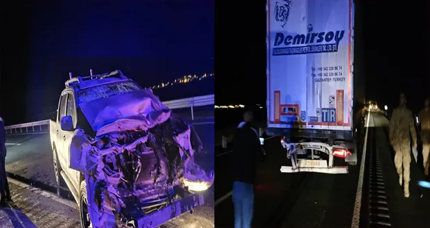 Sürücülerinin isimleri öğrenilemeyen 72 AT 671 plakalı kamyonet, 27 F 6855 plakalı tır ile çarpıştı.