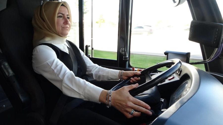 Türkiye’deki 2 kadın trambüs sürücüsünden biri olan Sultan Geleri, erkeklere taş çıkarıyor