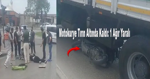 Bursa'nın Yıldırım ilçesinde meydana gelen kazada, sipariş teslimi sırasında tırla çarpışan motokurye ağır yaralandı.