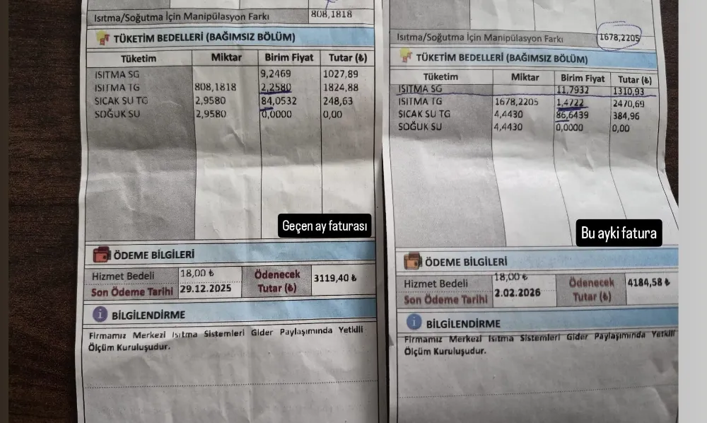 Hak sahipleri, önceki ay ile son ay arasında faturalar arasında ciddi farklar oluştuğunu, artışların yalnızca doğalgaz zamlarıyla açıklanamayacak düzeyde olduğunu dile getirdi. Site yönetimleri ve faturalandırmadan sorumlu firmaların, gelen tepkiler üzerine “doğalgaz fiyatlarına zam geldiği” yönünde açıklamalar yaptığı, ancak bu açıklamaların vatandaşlar nezdinde tatmin edici bulunmadığı belirtildi.