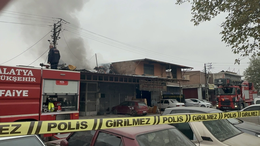 Malatya'da sanayi sitesinde bir oto tamircisi dükkânının çatısında çıkan yangında alevler gökyüzünü kapladı. Büyük paniğin yaşandığı yangında maddi hasar meydana geldi.