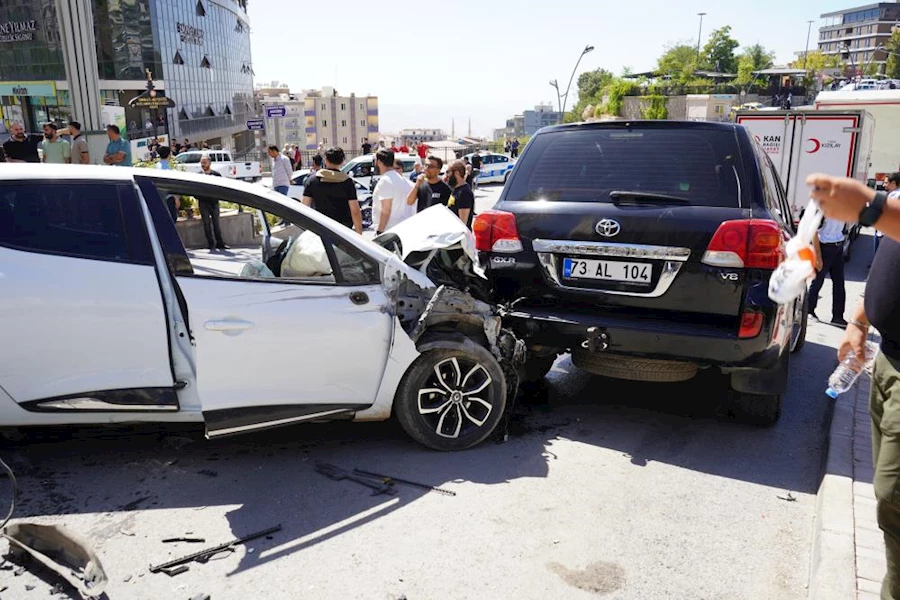 Kaza, saat 13.00 sularında merkez Kent Meydanı Yıldızlı Kavşak'ta meydana geldi. Cumhuriyet Meydanı'ndan Kent Meydanı istikametine seyreden D.B. yönetimindeki 51 ACL 705 plakalı araç, 34 MOY 829 plakalı pikaba arkadan çarptı. Direksiyon hakimiyetini kaybeden D.B. kavşakta ters yöne girerek A.B. yönetimindeki 06 EPS 69 plakalı araca çarptı. Çarpmanın etkisiyle A.B. de direksiyon hakimiyetini kaybederek yol kenarında park halindeki 73 ABP 803 plakalı araca, D.B. ise 73 AL 104 araca çarparak durabildi. Kazada araç sürücüleri D.B. ve A.B. ile birlikte 4 yaşındaki A.I. isimli çocuk yaralandı. Yaralılar, sağlık ekiplerince yapılan ilk müdahalelerinin ardından Şırnak Devlet Hastanesine kaldırılarak tedavi altına alındı.